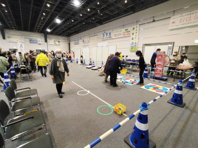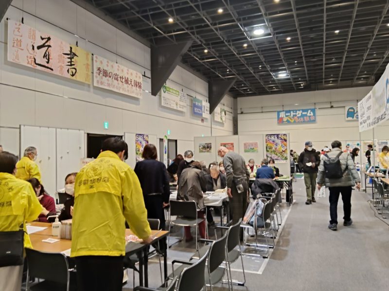各区の紹介コーナーや、シニア大学紹介、スポーツ体験、企業ブースなど多数の出店があり、たくさんの来場者の方が楽しんでいる様子が見られました。